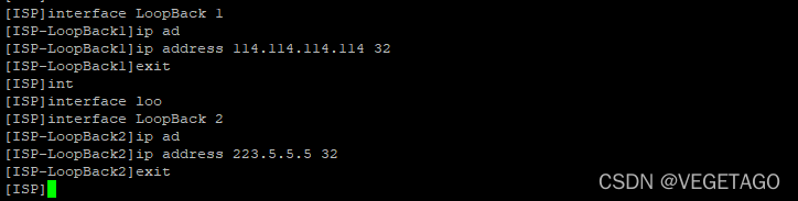 3、在ISP上起loopback口,模拟公网常见IP(本步骤为可选步骤)
