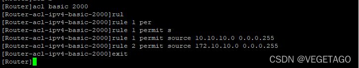 4、在路由器上配置acl,并匹配需要上网的网段。