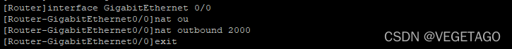 5、在路由器的外网接口(G0/0)下使用nat功能并应用ACL 2000