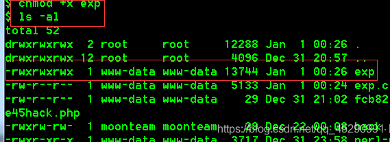 接下来要运行这个脚本才可以生成一个socket用于攻击机和肉鸡之间的后续对话,先看看这个脚本是否具备执行权限,用命令ls -al (列举出文件夹下所有文件的详细信息),可见这个文件只有读权限(read)、写权限(write)。