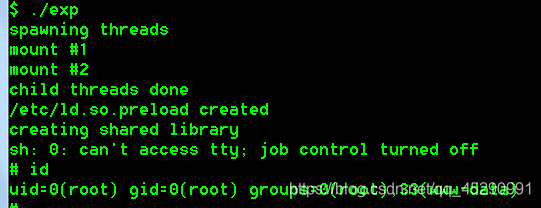 执行exp,然后查看ID,发现我们的用户成了root权限: