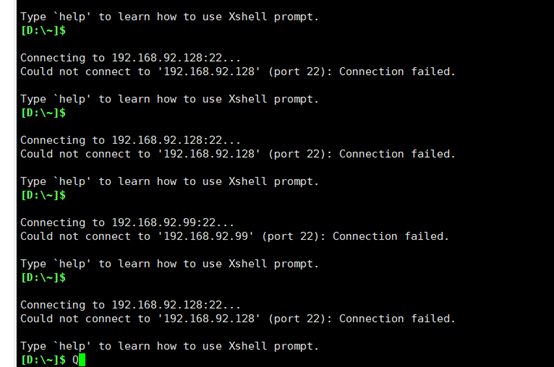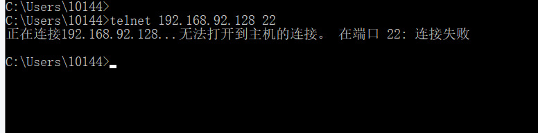 连接的现象是,Could not connect to '192.168.92.128' (port 22): Connection failed。