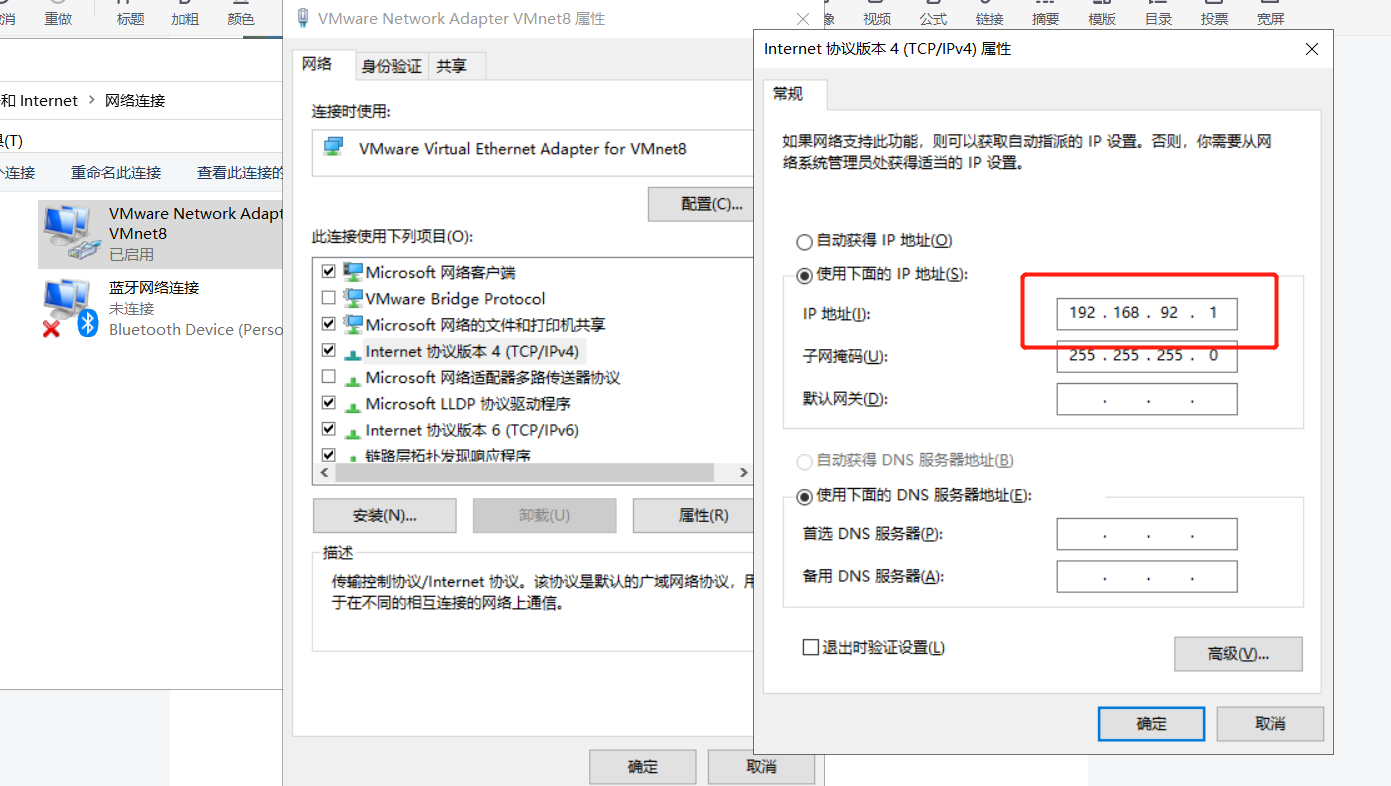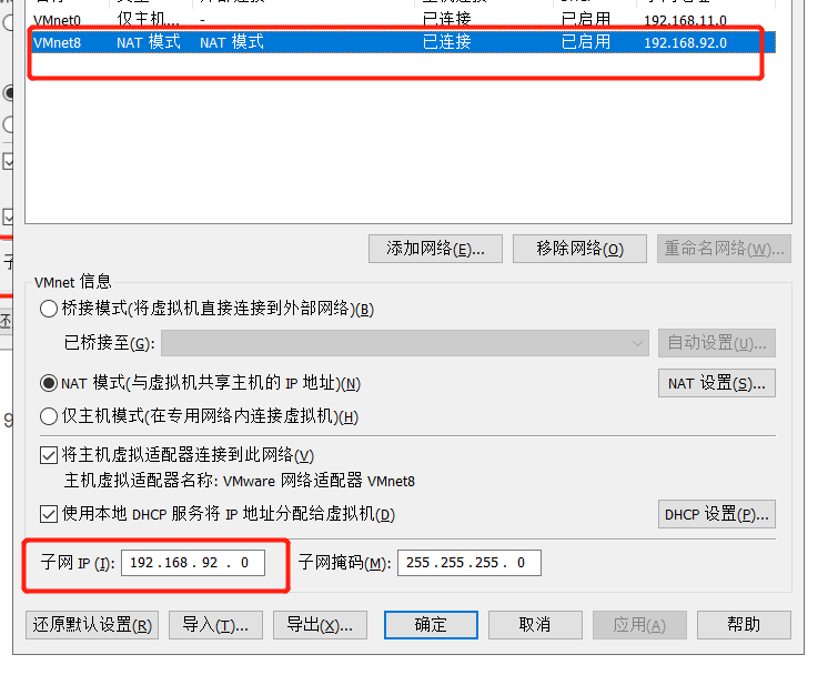 虚拟机和VMnet8不在一个网段上,一个在192.168.92.网段,一个在192.168.33网段导致不通,