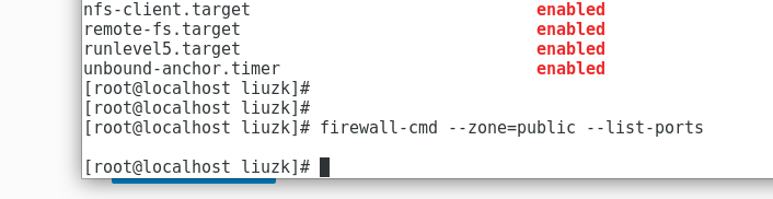 ② 查看所有打开的端口: firewall-cmd --zone=public --list-ports