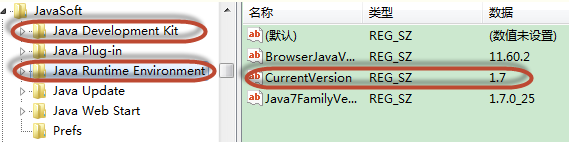 分别修改Java Development kit及Java Runtime Environment中的CurrentVersion值为1.7或1.8