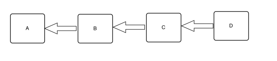 假设系统中被分为了 A、B、C、D 这 4 层,那么 A 是相对的最内层,外层依次是 B、C、D。在一个严格单向依赖的系统中,依赖关系总是只能从外层指向内层。