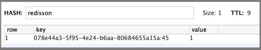 这里表面数据类型是Hash类型,Hash类型相当于我们java的 <key,<key1,value>> 类型,这里key是指 ‘redisson’