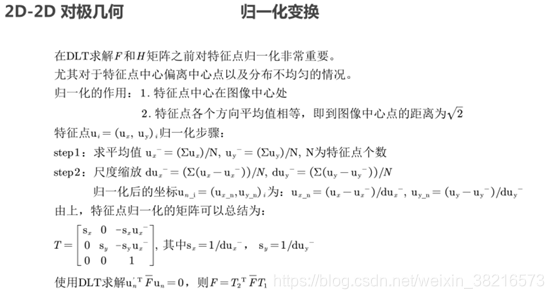 4、特征点的归一化,点的平均值在(1,1)处,到图像中心的距离为根号2,各个分量总体上有一样的平均值,
