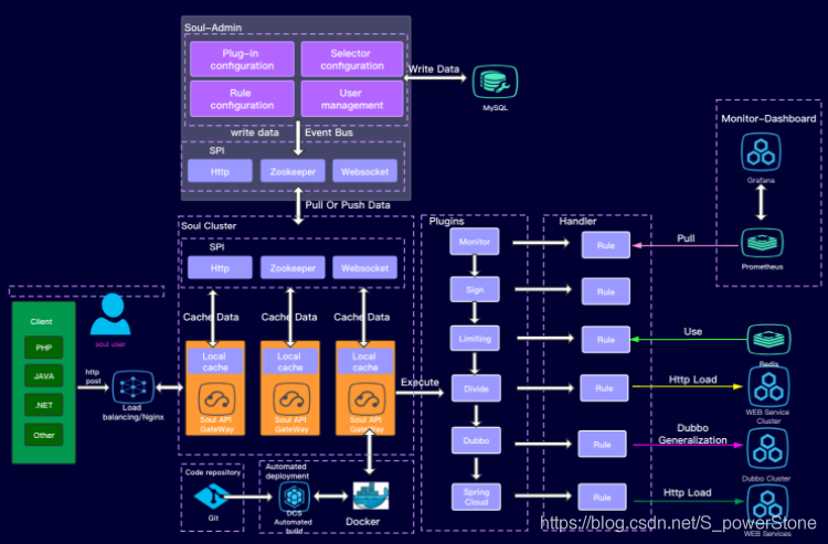 它一个异步的,高性能的,跨语言的,响应式的API网关,参考了Kong,Spring-Cloud-Gateway等优秀的网关后,站在巨人的肩膀上,Soul由此诞生!