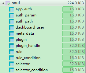 \soul-2.2.1\script下soul.sql文件,执行完会看到下面的数据库表