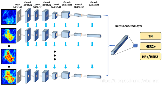 本研究目的是应用深度学习网络在MRI上区分乳腺癌的三种分子亚型,包括:HR阳性&HER2阴性(HR+/HER2−), HR阴性&HER2阴性(即三重阴性,TN),以及HER2阳性(HER2+)。以包含肿瘤和肿瘤周围组织的最小边界框作为输入,利用传统CNN和卷积长短期记忆(CLSTM)的递归网络,在DCE-MRI中考虑时间信息,并对所得结果进行比较。另外,通过迁移学习对模型进行重新调整,以研究其在不同临床环境下的普遍应用。
