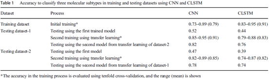 【文献题目】Prediction of breast cancer molecular subtypes on DCE-MRI using convolutional neural network with transfer learning between two centers.