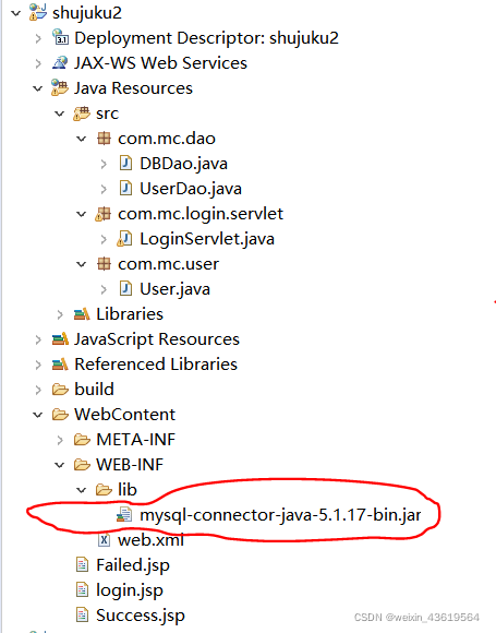 先看一下我解释的案例1创建项目的基本目录,圈住的是数据库驱动jar包,很重要,没他运行不了。