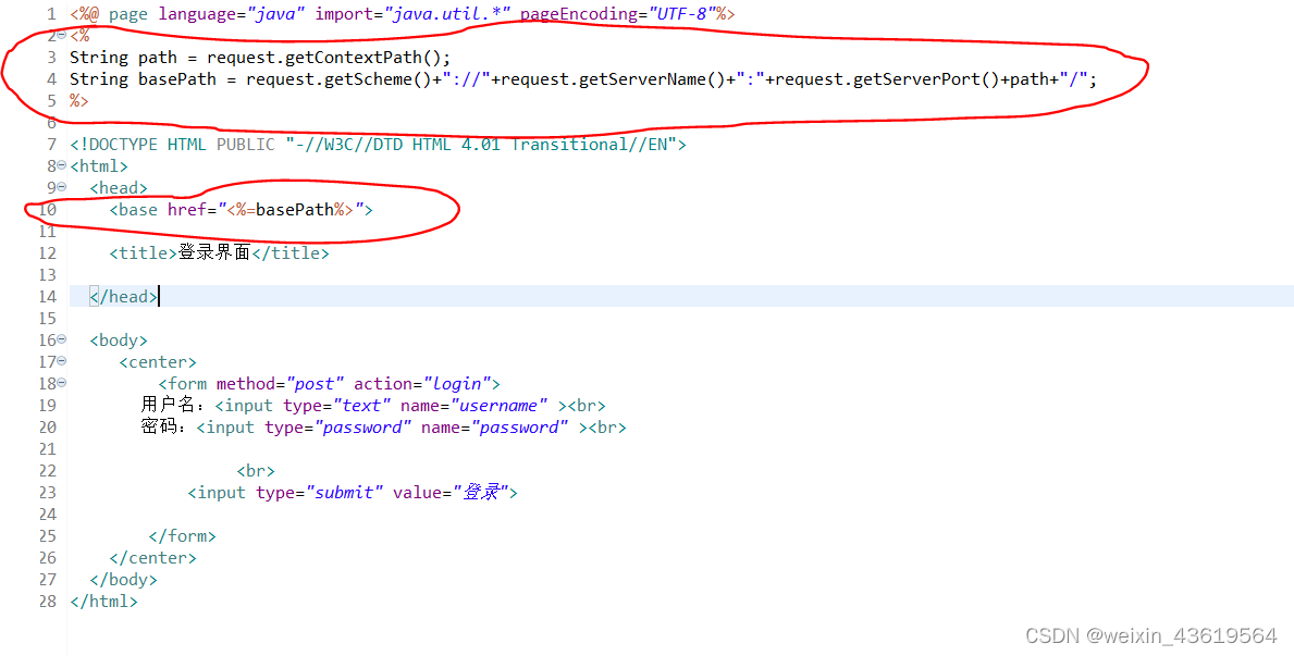 看图说话:圈住的两部分是在原来login.jsp中新增的代码