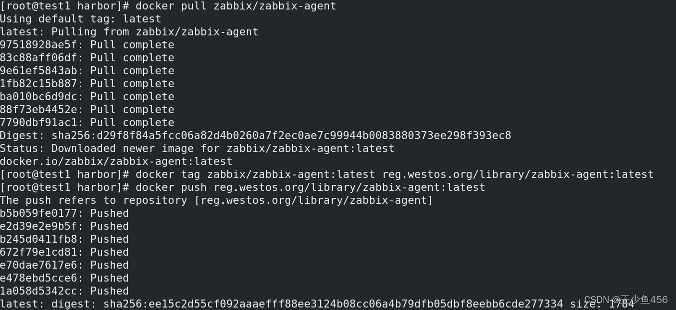 (1)在test1中拉取并标记上传zabbix-agent到harbor仓库
