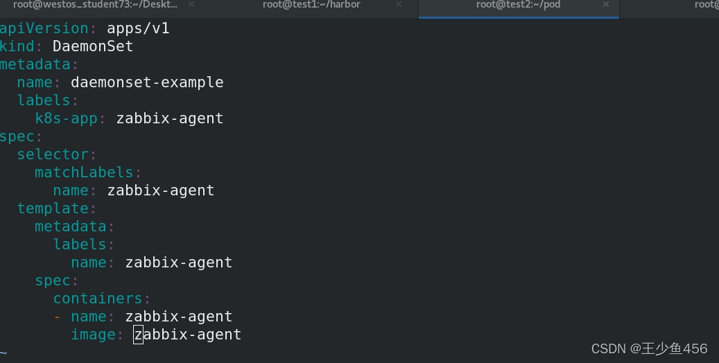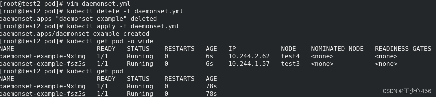 (2)删除已有的pod,编辑DaemonSet控制器清单文件daemonset.yml,读取应用该文件