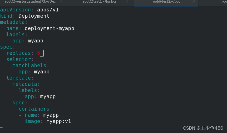 (4)编辑Deployment控制器清单文件deploy.yml,指定运行的Pod副本数量为6(扩容和缩容)