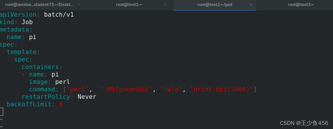 (2)删除已有的pod,编辑Job控制器清单文件Job.yml,读取应用该文件