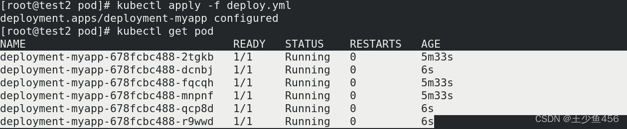 读取应用该文件,查看pod信息可以看到pod副本数量变为6个