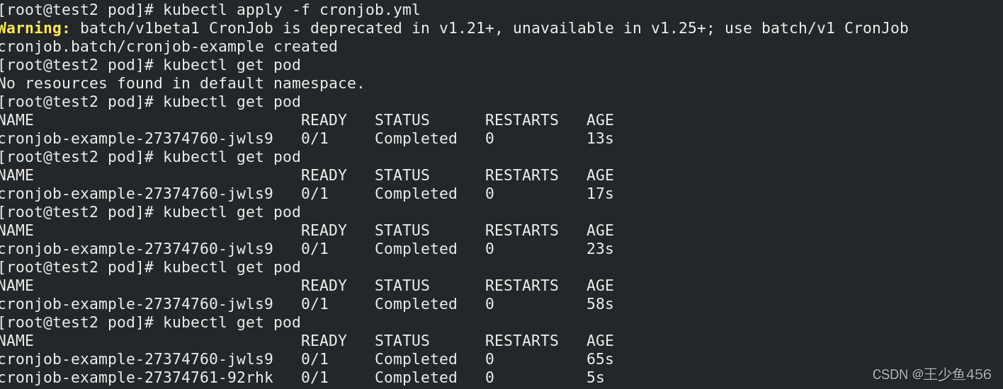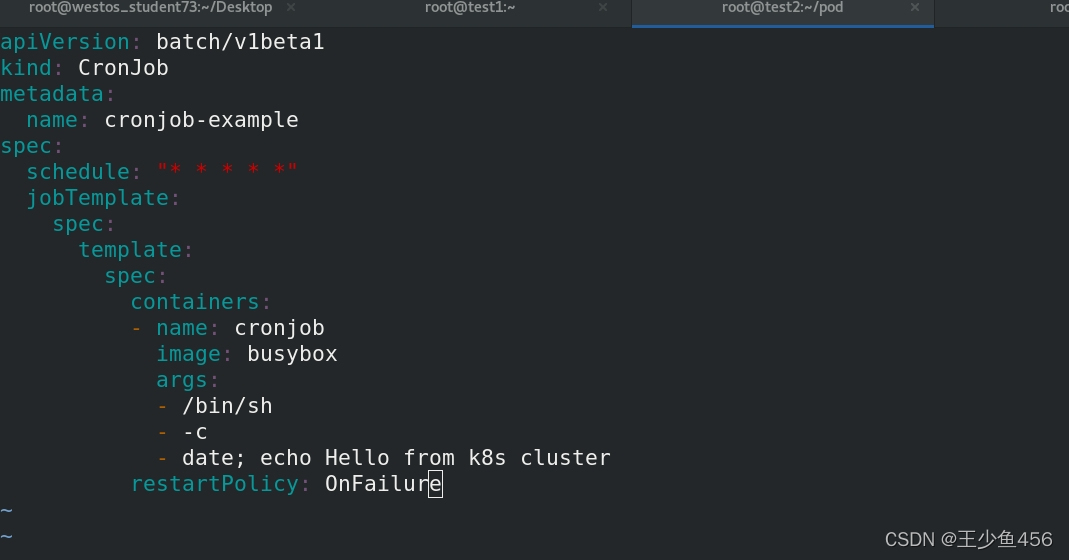 (1)删除已有的pod,编辑CronJob控制器清单文件cronJob.yml,读取应用该文件