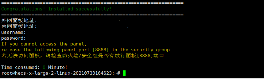 5.在浏览器输入外网面板地址,输入username,password登录 ,绑定刚才注册的宝塔账号。