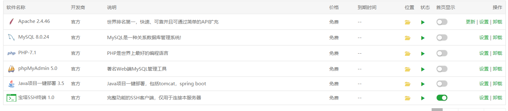 6.在软件商店安装MySQL服务以及Java项目一键部署和环境