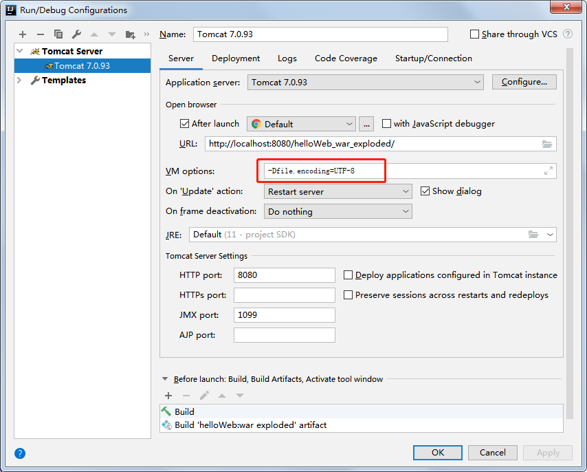 1:在-Dfile.encoding=UTF-8 在vm中设置编码方式