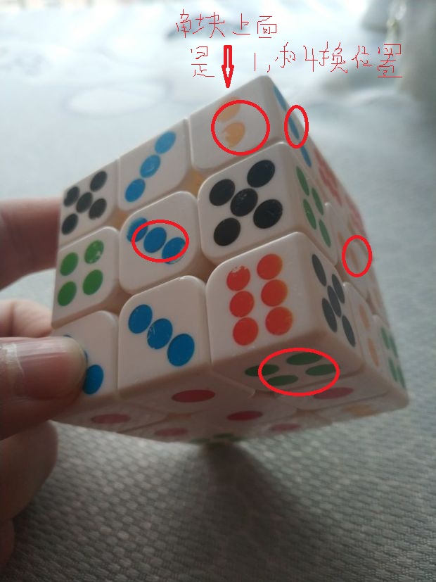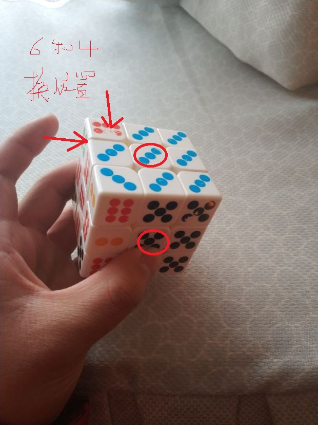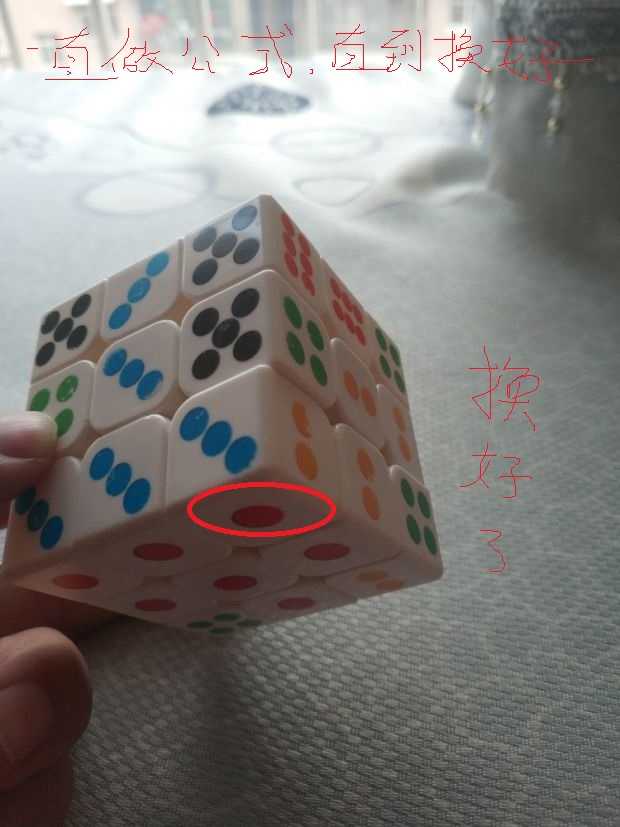 ps:这个地方过程前面拼好的颜色会打乱,但只要固定5和3,拼好四个角,就会全部复原。