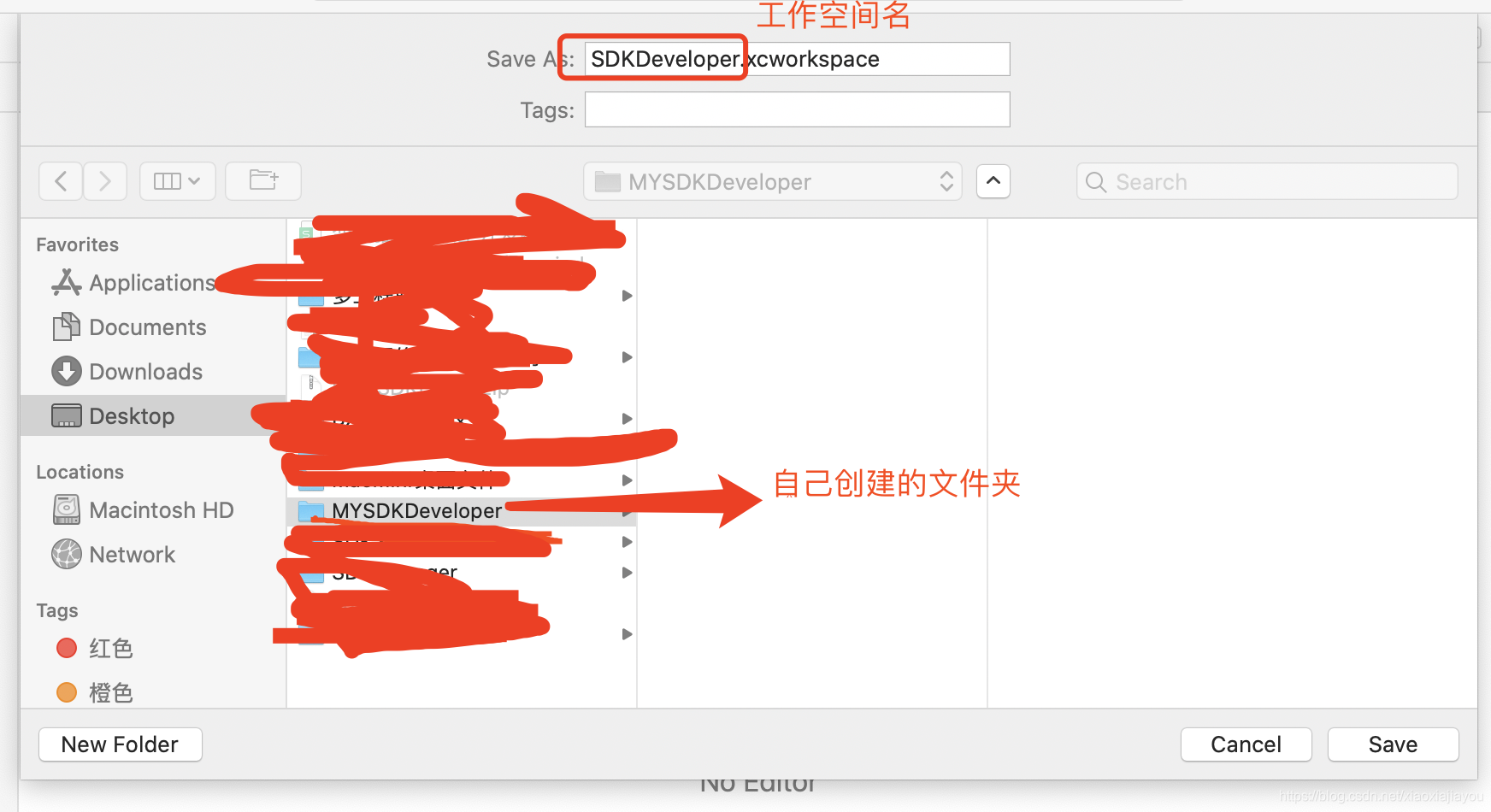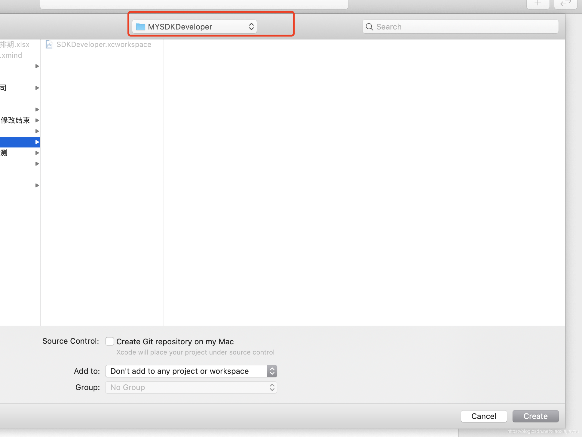 打开Xcode 正常的创建工程步骤,工程保存位置建议在 MYSDKDeveloper夹下,与 SDKDeveloper.xcworkspace 同级,方便管理