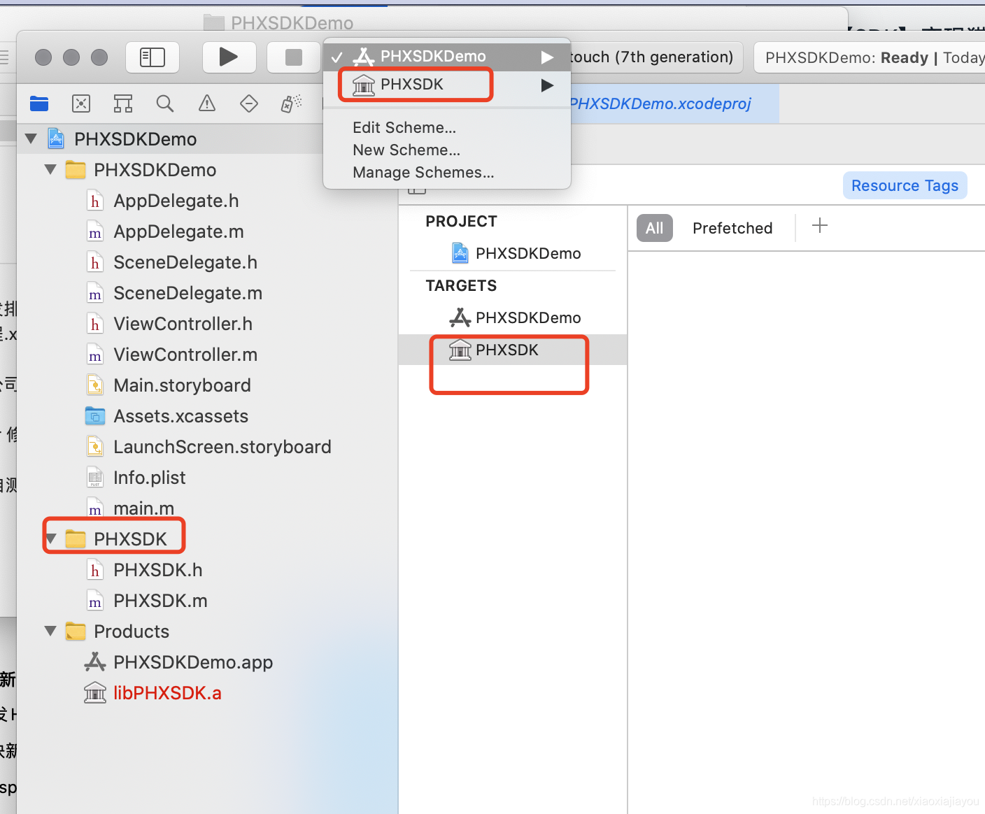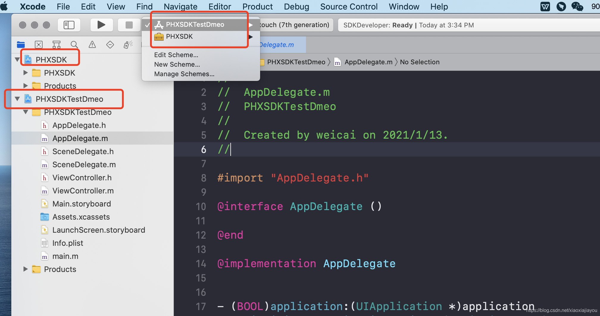 PHXSDK 工程添加方式同步骤4一样,最后两个工程添加到 SDKDeveloper.xcworkspace 成功如下图