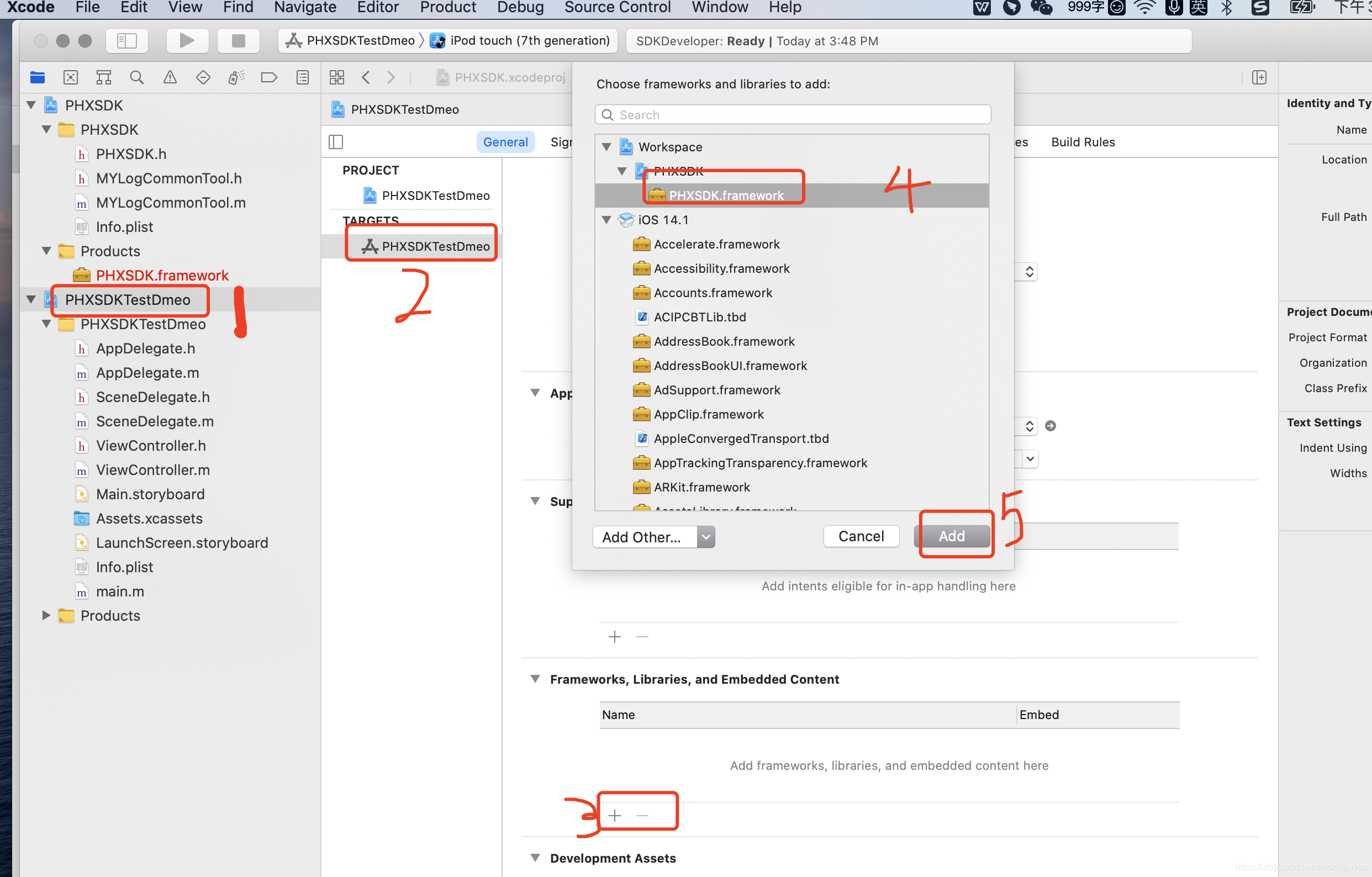2.选择项目,选择Target ,进行添加 PHXSDK 操作