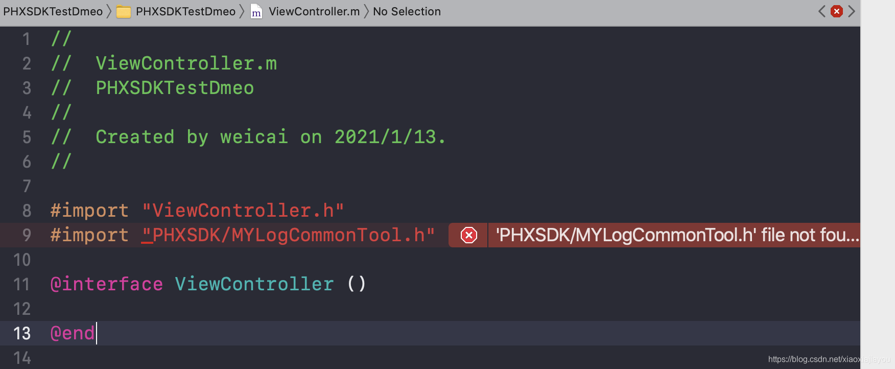 编译通过,引用PHXSDK #import "MYSDK/MYLogCommonTool.h" 文件,再次编译报错