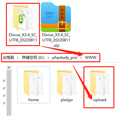 而Discuz是网页程序,需在解压后将所有网页程序粘贴至PHPStudy的网页文件夹下,等到PHPStudy构建好网页程序后,再进行线上部署。