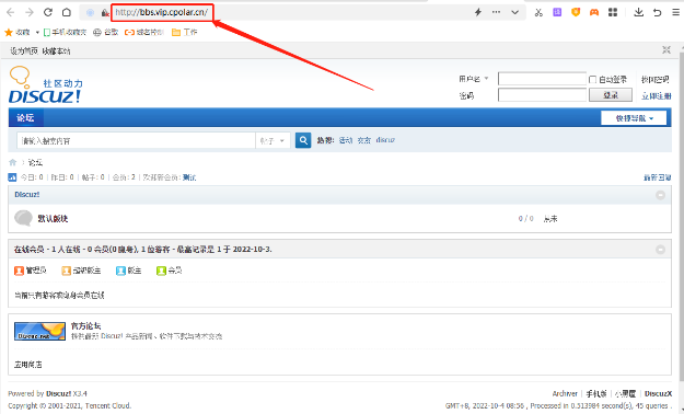 到这里,Discuz论坛就搭建完毕,无论是同一城市的公司分部,还是其他城市的分公司,都可以通过cpolar建立的内网穿透数据隧道访问到位于本地电脑上的Discuz论坛。我们也可以通过加载购买的自定义域名和安全证书,在cpolar客户端设置自定义域名或使用https协议,让公司论坛域名变得更易记忆和安全。如果您想更详细了解使用cpolar搭建Discuz论坛,请翻阅我们的文章《用cpolar发布本地的论坛网站》。而使用cpolar发布论坛只是cpolar内网穿透功能的一个应用场景,cpolar创建的数据隧道还能应用在更多场景中。如果您对cpolar的使用有任何疑问,欢迎与我们联系,我们必将为您提供力所能及的协助。当然也欢迎加入cpolar的VIP官方群,共同探索cpolar的无限潜能。
