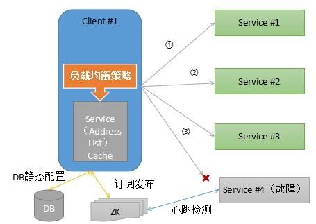 另一种负载均衡做法,是在请求端添加一个组件,该组件可以知道当前有几个可用的用户微服务的ip和端口,然后在请求前使用负载均衡算法,命中其中一个节点。而往往这个组件存储的可用微服务的ip和端口往往是从类似注册中心的地方获取的: