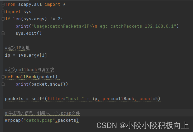 print("Usage:catchPackets<IP>\n eg: catchPackets 192.168.0.1")