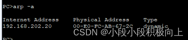 成功发送这个数据包之后,查看一下被攻击计算机的ARP缓存表