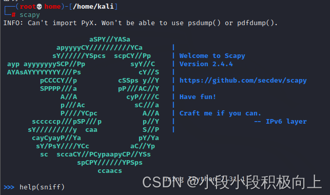 这时Scapy就会按照要求开始捕获所需要的数据包。