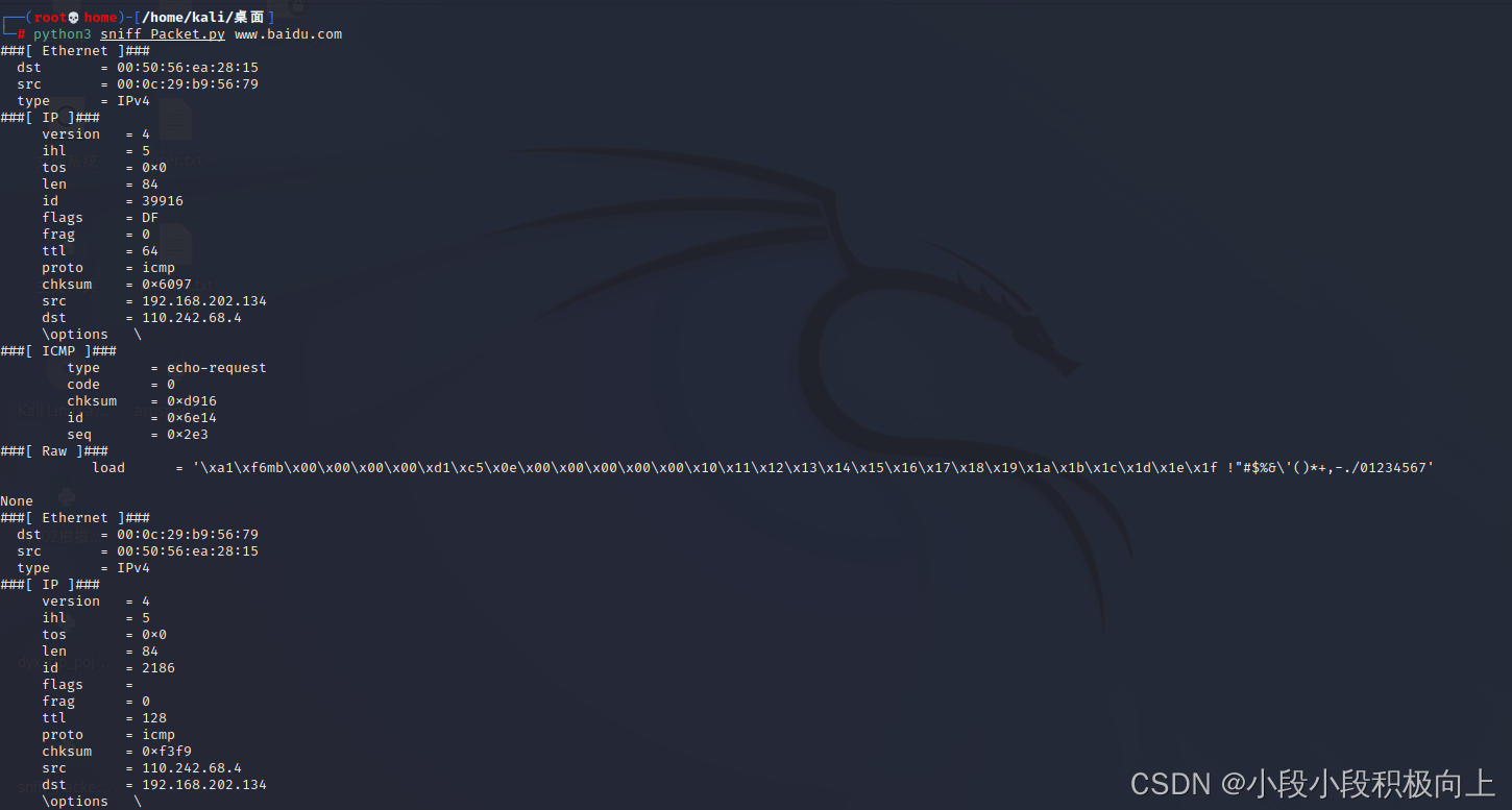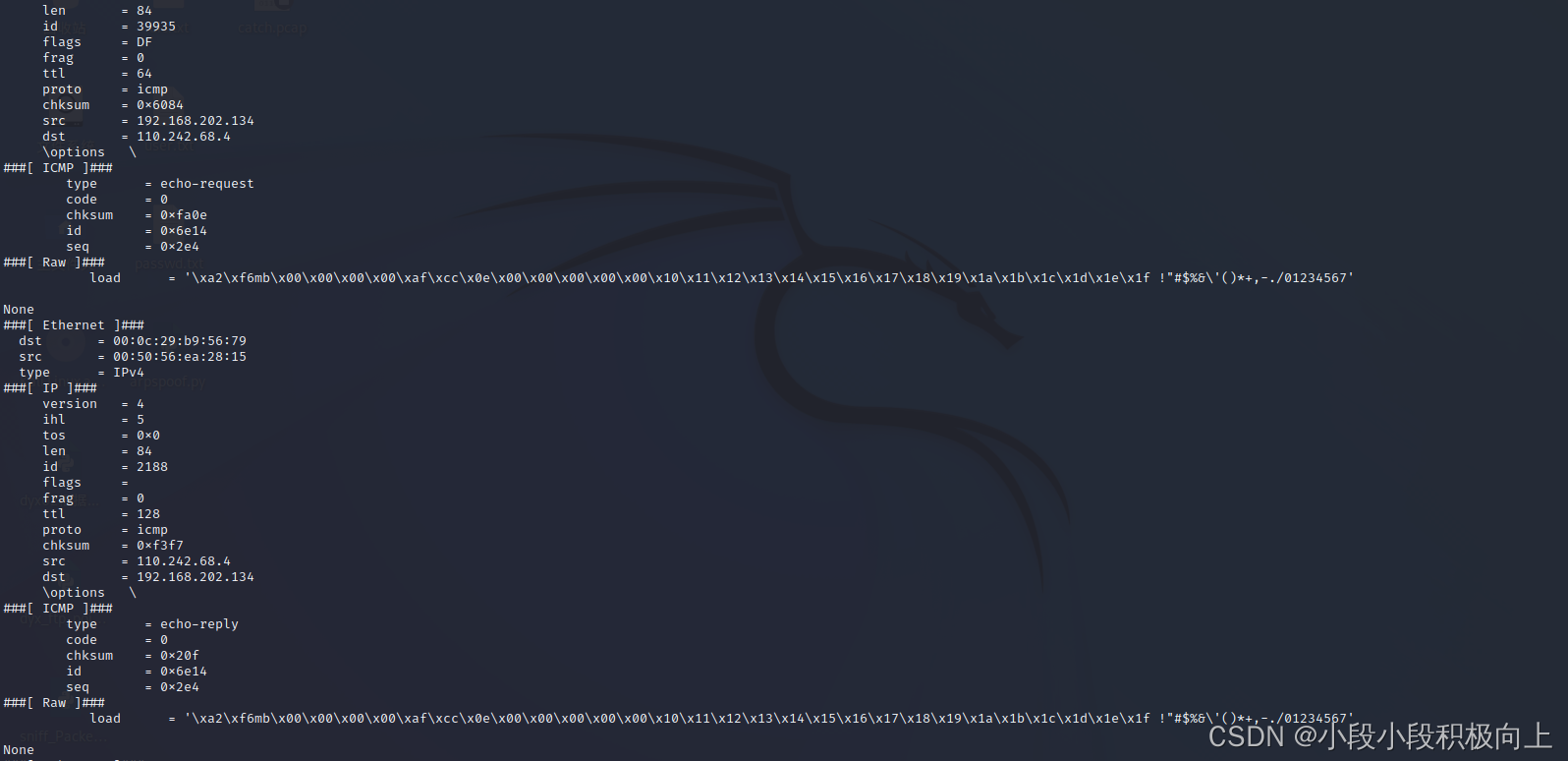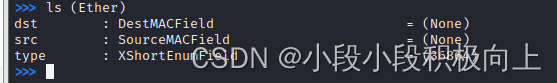 即使不为Ether中的dst和src赋值,系统其实也会自动将src的值设置为使用Kali Linux主机的硬件地址