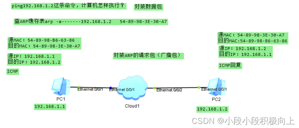 例如:两台主机PC1:192.168.1.1 PC2:192.168.1.2