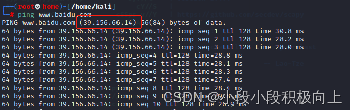 >>>packet = IP(dst="www.baidu.com")/ICMP()