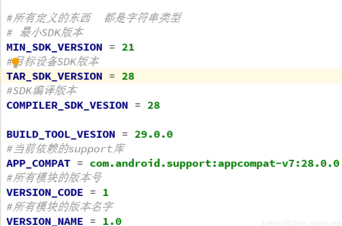 第二步:把所有module中的版本号以及一些需要统一管理的内容进行统一管理(通过定义全局变量的方式,常用有三种方式)
