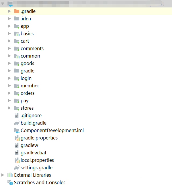 到此为止,一个组件化项目的架子就搭好了。注意:以上的操作都针对所有的业务逻辑module,所有业务逻辑module都要进行这样处理。