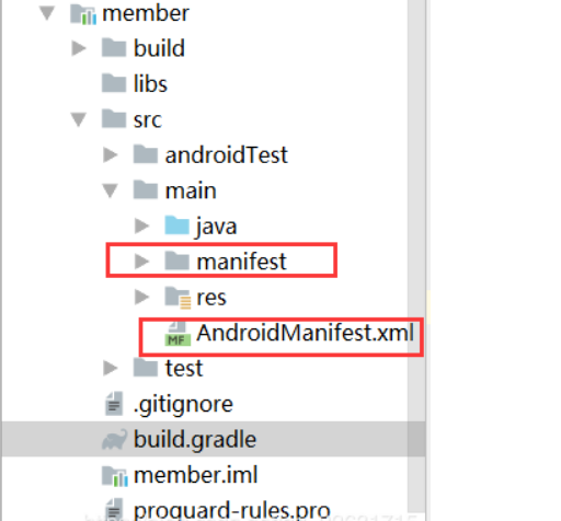 处理方式很简单,直接复制一个AndroidManifest.xml文件,一份在module是Application的时候用,一份在module是Library的时候用。如图: