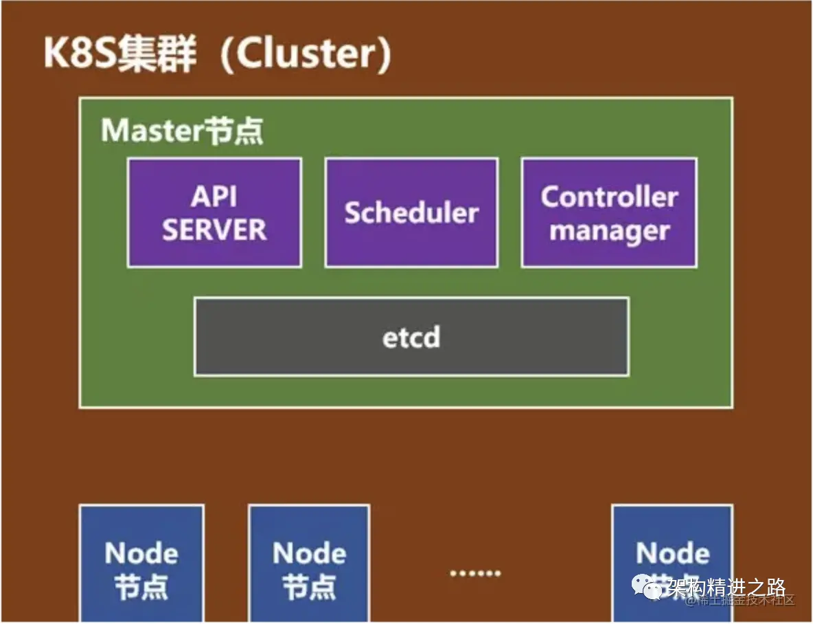 我们知道了 Master 节点包括 Api Server、Scheduler、Controller manager、Etcd。