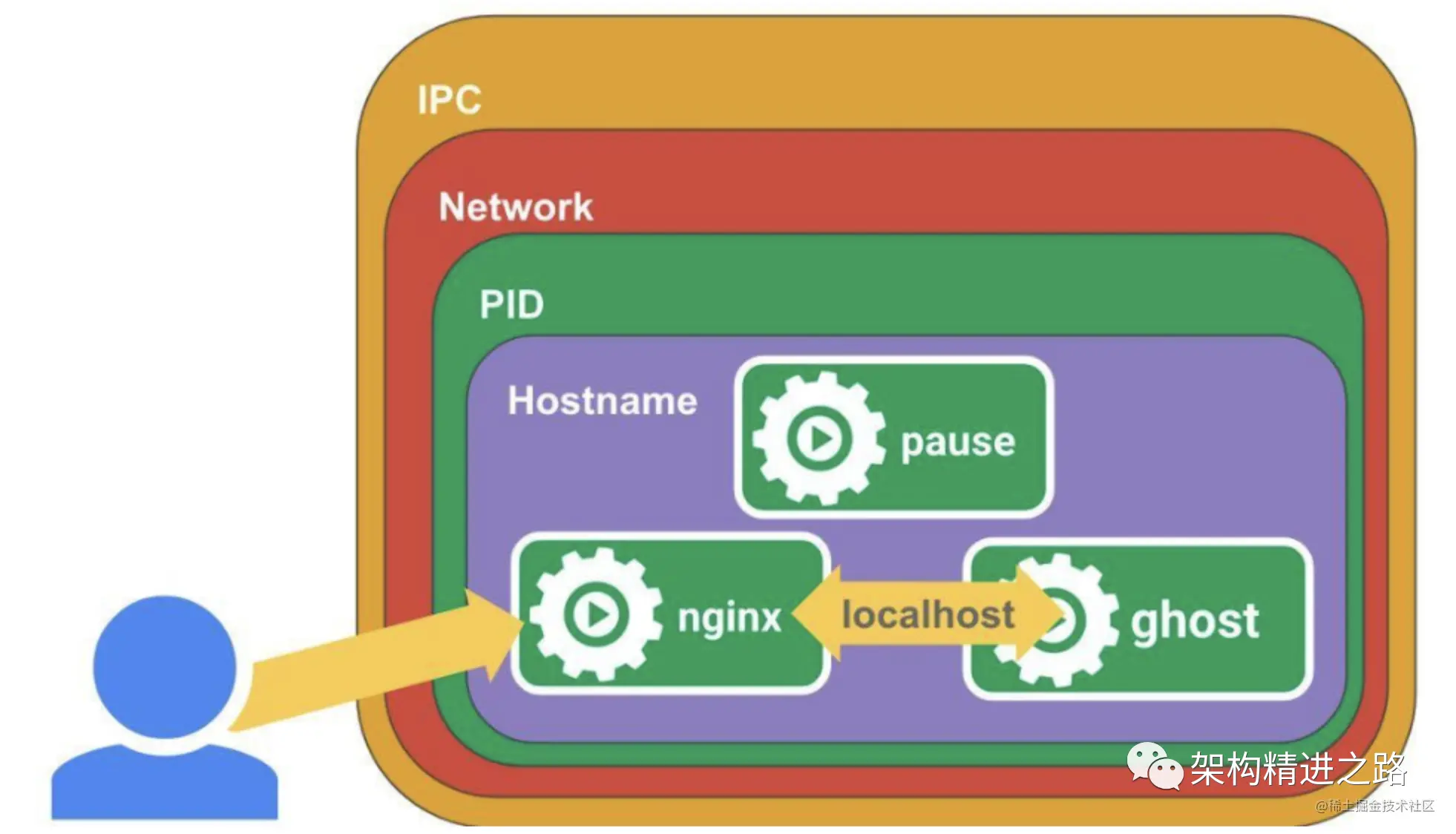 - IPC 命名空间:Pod 中的多个容器能够使用 System IPC 或 POSIX 消息队列进行通信。