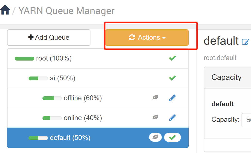 "yarn.scheduler.capacity.root.ai.queues":"offline,online",
