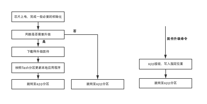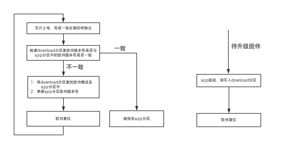 根据单片机flash分区域不同和boot与app功能不同,更新方法也有所差异;