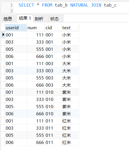 ③我试了一下,当自然连接的两个表没有共同的属性时会产生如下的结果。如下所示: