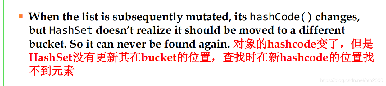 --当list第一次被放置在hashset中时,根据他hashcode值存放在一个特定的散列桶中
